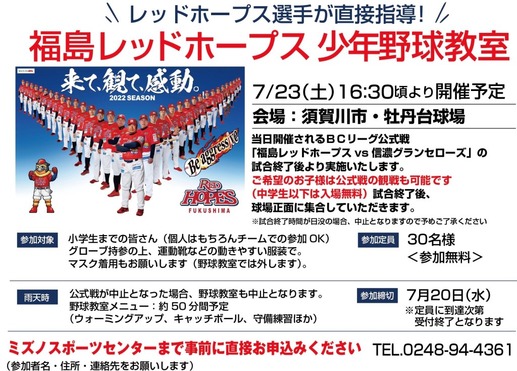 初めてのお子様からチームや部活動に所属している中学生までのお子様が参加無料で野球を学べるチャンスです。参加希望の方は当店申込書にご記入のうえスタッフまで。参加希望のお子様は公式戦の観覧も無料です。