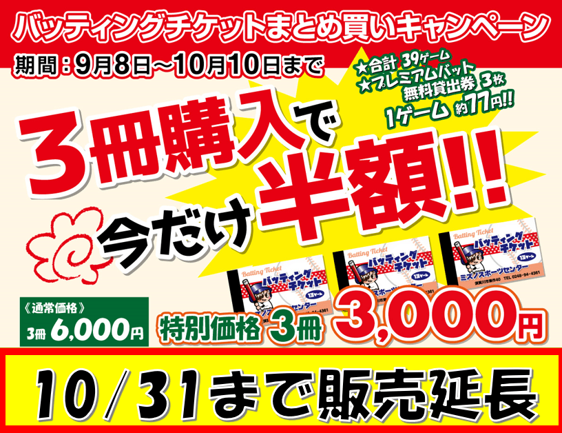 いつもご利用いただきましてありがとうございます。大変ご好評を頂いています半額キャンペーンですが。お客様からの多くの声を頂きまして販売期間延長決定しました。期間は10/31まで延長いたします。まだ購入されていないお客様・もっと購入したいお客様今がチャンス‼1ゲーム77円とお得です。打って打って打ちまくれ!!