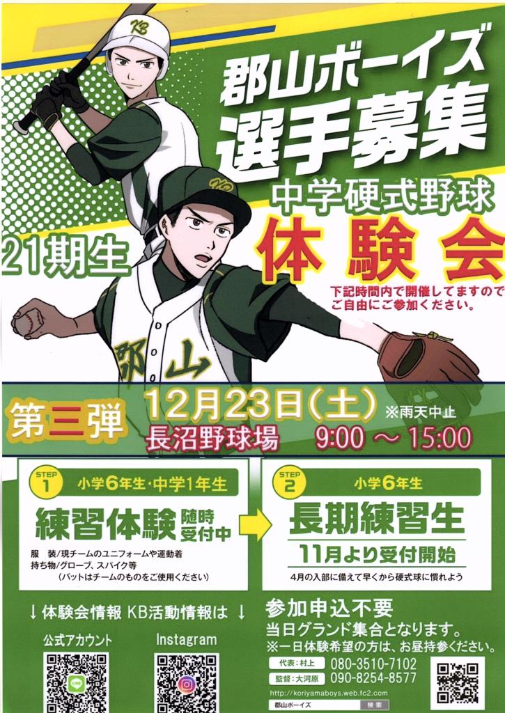 郡山ボーイズ体験会のお知らせ 投稿者:oouchimizuno2023年11月27日カテゴリー:未分類 お問い合わせはポスターの連絡先まで 共有: クリックして X で共有 (新しいウィンドウで開きます) X Facebook で共有するにはクリックしてください (新しいウィンドウで開きます) Facebook いいね 読み込み中…