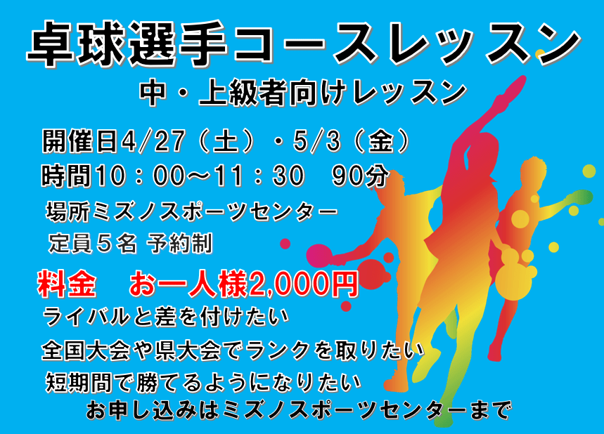 中・上級卓球レッスンスタート 投稿者:oouchimizuno2024年4月11日2024年4月15日カテゴリー:未分類 全国大会出場の現役選手がコーチについてグループレッスン90分指導料金もリーズナブルです‼ 共有: クリックして X で共有 (新しいウィンドウで開きます) X Facebook で共有するにはクリックしてください (新しいウィンドウで開きます) Facebook いいね 読み込み中…
