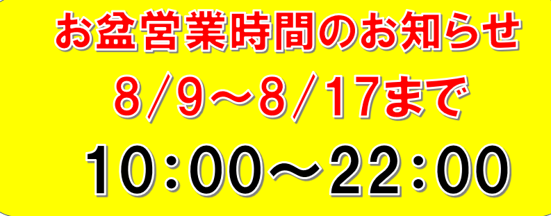 お盆営業時間のお知らせ 投稿者:oouchimizuno2025年8月10日カテゴリー:未分類 共有: クリックして X で共有 (新しいウィンドウで開きます) X Facebook で共有するにはクリックしてください (新しいウィンドウで開きます) Facebook いいね 読み込み中…