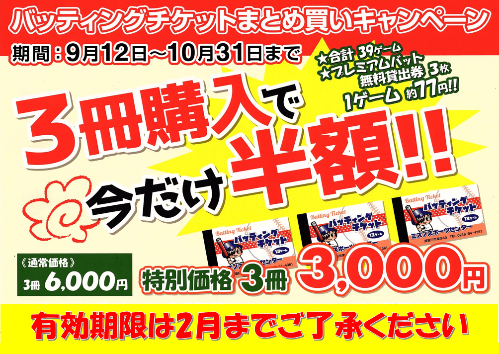 バッティングチケット半額は10月まで 投稿者:oouchimizuno2025年10月13日カテゴリー:未分類 共有: クリックして X で共有 (新しいウィンドウで開きます) X Facebook で共有するにはクリックしてください (新しいウィンドウで開きます) Facebook いいね 読み込み中…