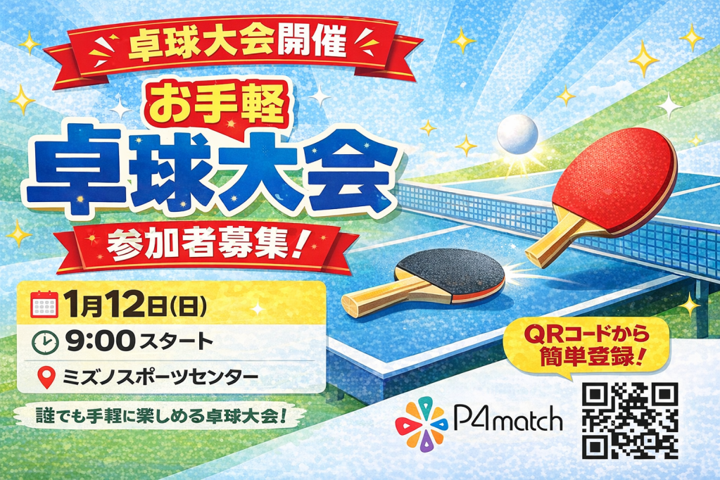 第2回卓球大会参加者募集 投稿者:oouchimizuno2025年12月26日カテゴリー:未分類 共有: クリックして X で共有 (新しいウィンドウで開きます) X Facebook で共有するにはクリックしてください (新しいウィンドウで開きます) Facebook いいね 読み込み中…
